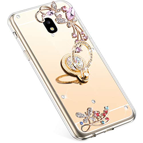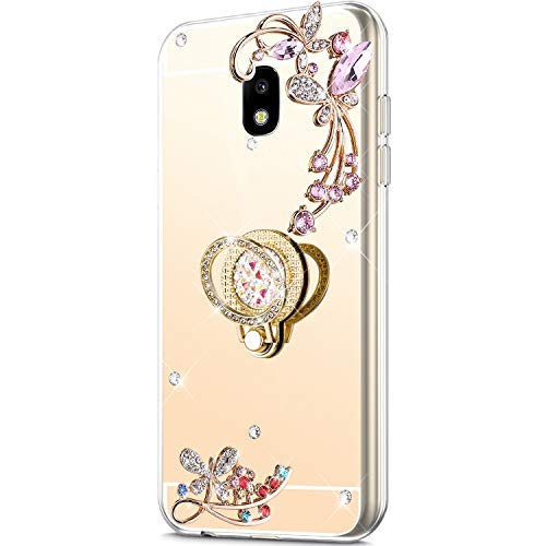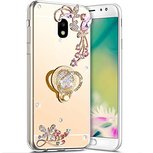 Robinsoni Case Compatible with Samsung Galaxy J530 Phone Case Silicone TPU Cover Galaxy J530 Flexible Case 360 Degree Rotation Ring Case Kickstand Cover Sparkle Bling Phone Cover Gel Soft Case Gold