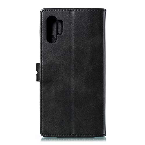 Robinsoni Case Compatible with Samsung Galaxy Note 10 Plus Retro Leather Wallet Cover with Card Holder Slots Cat Printed Folio Flip Cover TPU Silicone Inner Case Kickstand Magnetic Closure Case, Black