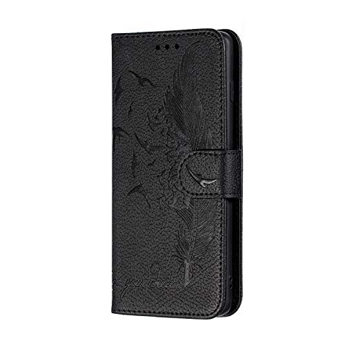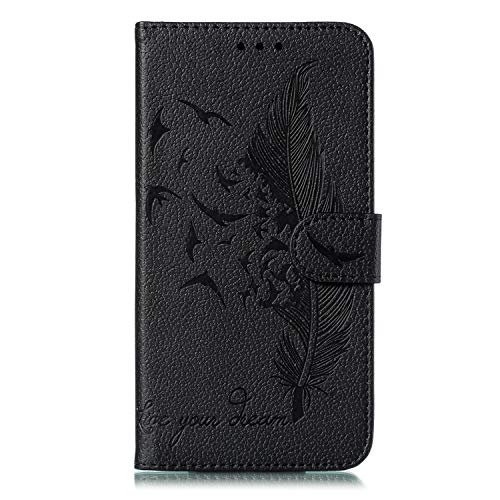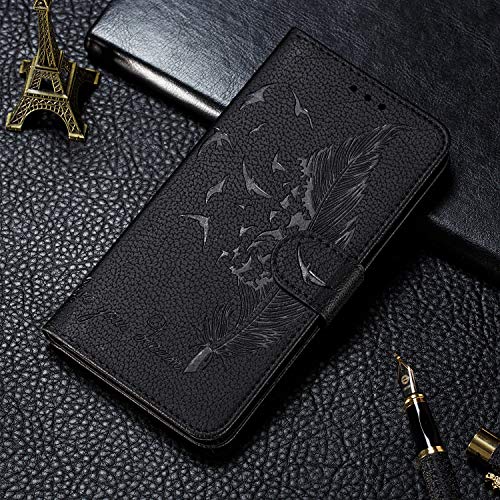 Robinsoni Case Compatible with Samsung Galaxy S10 Phone Case Wallet Leather Cover Shockproof Kickstand Case Notebook Feather Printed Cover Flip Stand Retro Style Book Case Heavy Duty Case Black