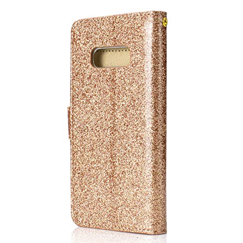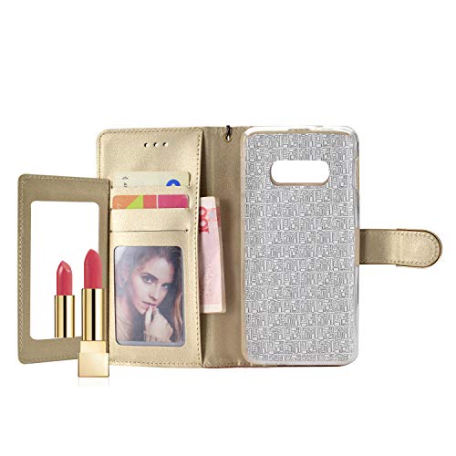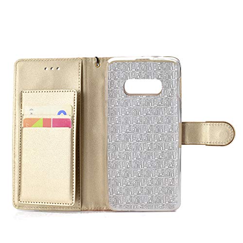 Robinsoni Case Compatible with Samsung Galaxy S10e Phone Case Wallet PU Leather Phone Cover Book Style Cover Kickstand Case Folio Flip Phone Cover Shockproof Heavy Duty Case Sparkle Bling Case Gold