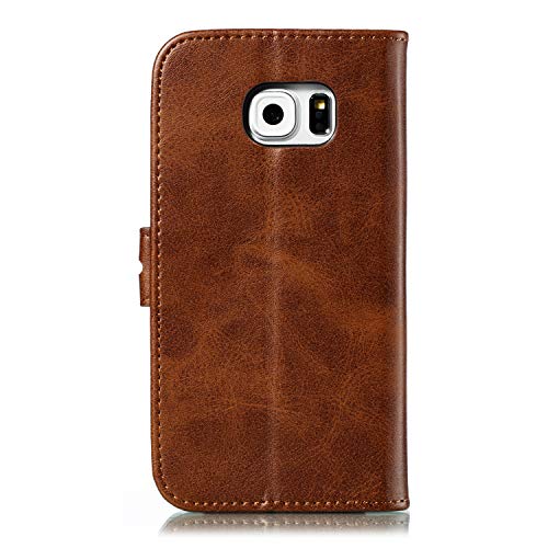 Robinsoni Case Compatible with Samsung Galaxy S6 Edge Retro Leather Wallet Cover with Card Holder Slots Cat Printed Folio Flip Book Cover TPU Silicone Inner Case Kickstand Magnetic Closure Case, Brown