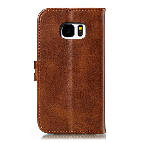 Robinsoni Case Compatible with Samsung Galaxy S7 Retro Leather Wallet Cover with Card Holder Slots Cat Printed Folio Flip Book Cover Case TPU Silicone Inner Case Kickstand Magnetic Closure Case, Brown
