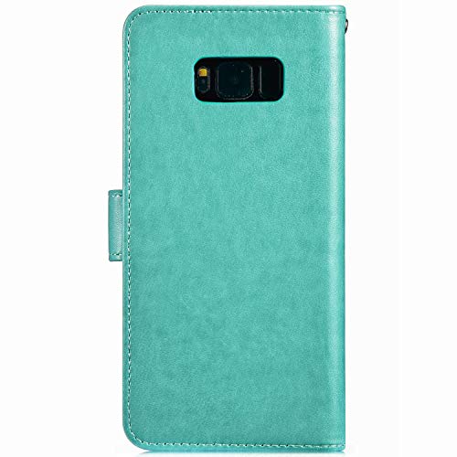 Robinsoni Case Compatible with Samsung Galaxy S8 Phone Case Wallet Galaxy S8 PU Leather Cover Shockproof Kickstand Case Flip Notebook Style Phone Cover Heavy Duty Case Hard Case Owl Printed Green