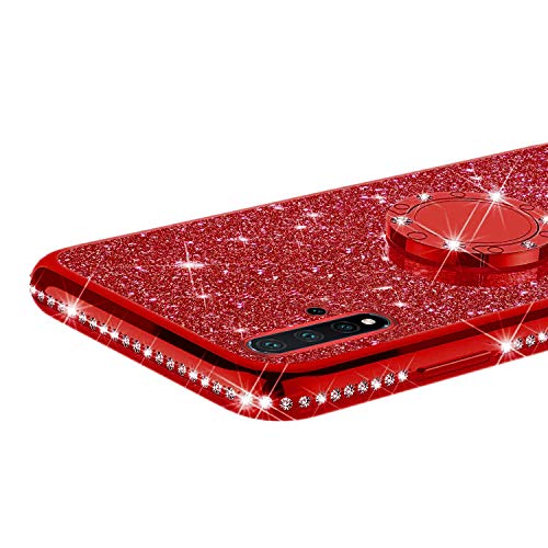 Robinsoni Case Compatible with Samsung Huawei Nova 5 Phone Cover Flexible Samsung Huawei Nova 5 Case Sparkle Silicone Case Diamond Edge Bling Case 360 Degree Rotation Ring Cover Ultra Thin Cover,Red