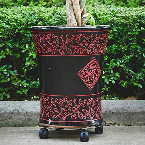 SIZE & DURABLE MATERIAL: This round iron planter stand is big enough to hold large and heavy planters or flower pot and moving around your home freely. Round flower pot rack on rollers is welded with high quality iron that makes this plant saucer with wheels can bear heavier plants pots or other planter.