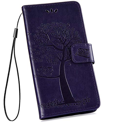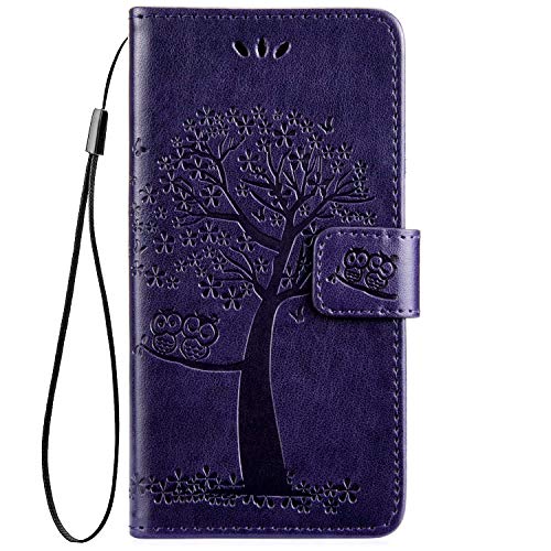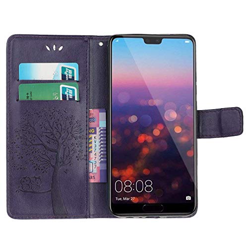 Saceebe Compatible with Huawei Mate 20 Leather Case Trees and Owl Embossed Leather Mobile Phone Case Scratch-Resistant Shockproof Protective Case Compatible with Huawei Mate 20 Dunkelviolett/