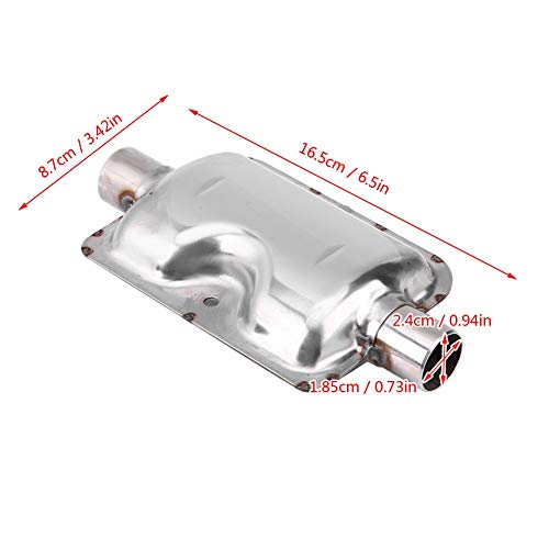 Good noise reduction, long life and other characteristics. Easy to install, 24mm stainless steel silencer complete with 2 clamps and mount bracket.