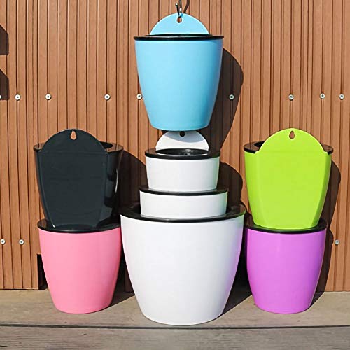 Self-watering hanging flowerpot made of high quality plastic material, safe and non-toxic.