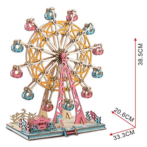 snaked cat 3D Wooden Puzzle, DIY Ferris Wheel/Merry-Go-Around Model Puzzle 3D Jigsaw Hand Craft Mechanical Toy Gifts for Kids and Adults (A, onesize) - Image 3
