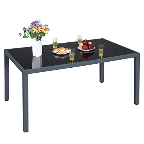GLASS WITH CLASS: Don’t let an ugly table put a stop to your outdoor entertaining. With a black tempered glass top, this garden table lets you get friends and family around for a hearty feast while bringing a touch of class to your garden