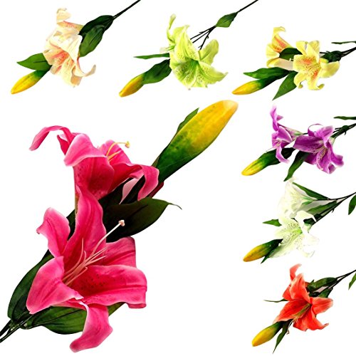 Lilys are the ideal ingredient to any bouquet for any occasion. Our lilies are available in a large range of colours making them even more versatile. Consists of two open heads, one bud and long leaves. Head Width: 15cm, Length: 72cm.