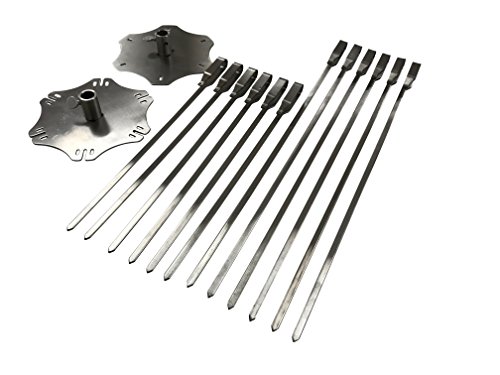 We provide 2 different sets of skewers in 2 different sizes provided so that you can adequately fit to your size rotisserie system/BBQ. One set measures approximately 30cm and the other set measures approximately 42cm from end to end.