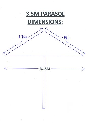 These top of the range parasols are 3.5M wide and 2.6M tall, the covers are available in 8 colours. PLEASE SEE ATTACHED DIAGRAM TO SEE HOW PARASOLS ARE MEASURED
