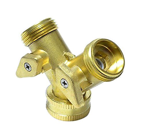 Two-way Brass Manifold Y connector allows you two uses from one tap with individual on/off valves.