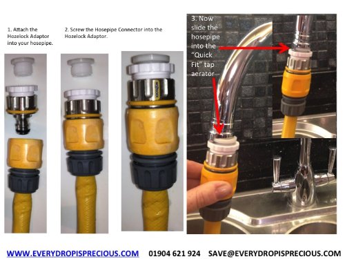 How do I attach my hosepipe / garden hose to my mixer tap indoors? With this brilliant hosepipe to mixer tap connector and permanent tap aerator all in one! Simply screw the tap aerator onto your mixer tap spout, and the hosepipe connector onto your Hozelock Connector (you only have to fit this once). Then when you're ready to use the hosepipe on the tap, all you have to do is push the hosepipe onto the tap spouts special casing. On 1st use, only turn the water on a little to determine water pressure required. A Quality Product with 2 uses in 1! Aerator is made of chromed brass, and guaranteed from any manufacturer defects for a period of 2 years. Search for Every Drop Is Precious to check out our other innovative & water saving products, perfect for your home, pets, garden & business. If you wish to use this product with a shower hose then we recommend it is used with a quality Every Drop Is Precious shower hose (compliant with EN1113)