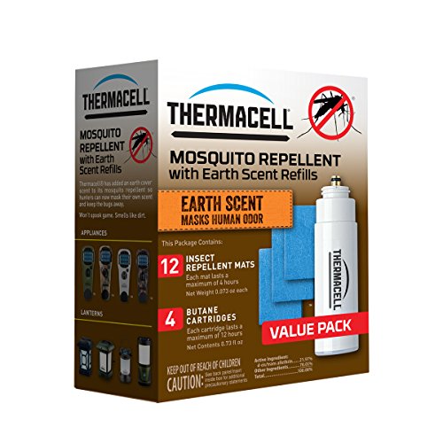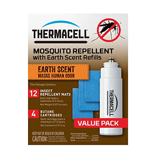 Thermacell mosquito repellent with earth scent works to protect you from bugs by using the repellent, allethrin, a synthetic analog (chemical copy) of a naturally occurring insecticide, pyrethrin. It offers the same 15 x 15 ft zone of protection against pesky biting insects as the original thermacell unscented mats ? but with the added benefit and convenience of a cover scent. When heated in any thermacell appliance, the new earth scent product both effectively repels mosquitoes and emits a convincing scent of earthy soil and decaying leaves ? a smell designed to mask human odors and linger continuously for up to four hours per mat. Refills can be stored for long periods of time and do not have to be used all at once. Mat must be replaced when it changes from blue to white.
