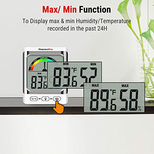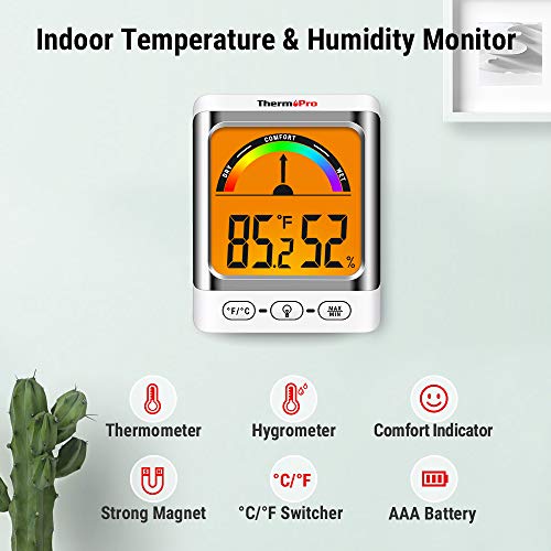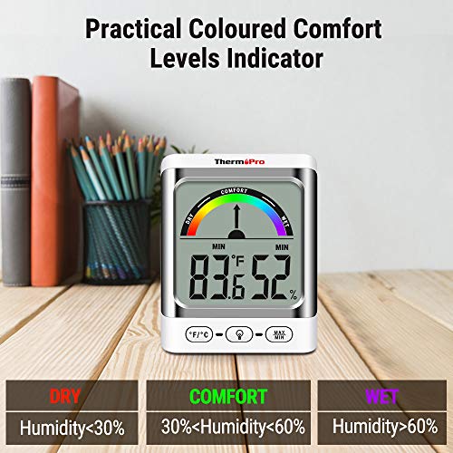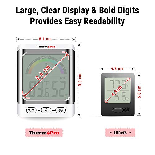 ThermoPro TP52 Indoor Hygrometer Thermometer Digital Room Thermometer Temperature Gauge Humidity Monitor Thermometer for Terrariums with Backlight LCD Display Air Humidity Meter