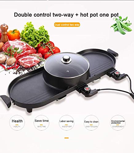 TLMYDD Smokeless Electric Grill, Electric Multi-function Two-in-one Grilled Shabu-shabu, 2000W Smoke-free Non-stick Grill Electric barbecue (Color : Black)