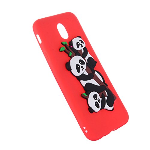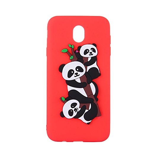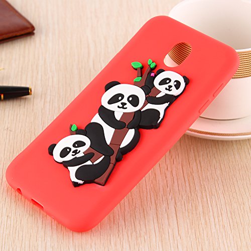 TPU Case for Samsung Galaxy J7 2017, Flexible Rubber Case Cover for Samsung Galaxy J7 2017 / J730, ZCRO Silicone Soft TPU Durable Gel Ultra Slim Thin Bumper Case with Cute Lovely Cartoon Animal Black White Pandas 3D Interesting Creative Design Back Cover Shell Anti Slip Shockproof Scratch Resistant Protective Cover Case for Samsung Galaxy J7 2017 / J730 (Red)