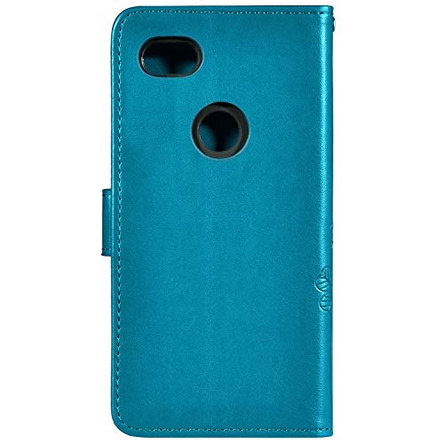 Urhause Case Compatible with Google Pixel 3A XL Case Glossy PU Leather Wallet Cover with Card Slots 3D Flower Wallet Kickstand Magnetic Closure Shockproof Case TPU Silicone Inner Folio Flip Case, Blue