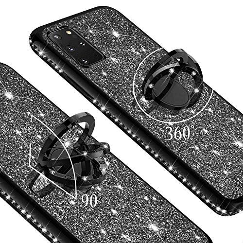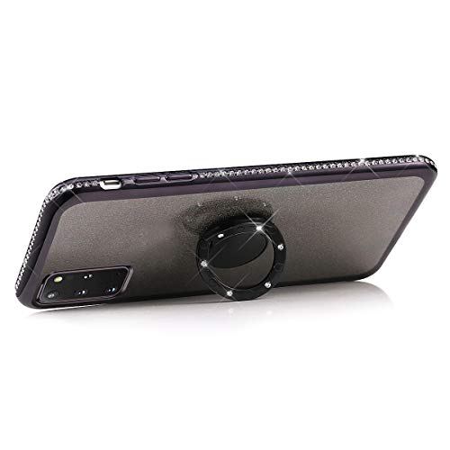 Urhause Cover Compatible with Samsung Galaxy S20 Plus Case Sparkle Glitter Bling Diamond Rhinestone Case Black Ring Holder Cover 360 Degree Rotation Ring Holder Kickstand Shiny Bling Shockproof Cover