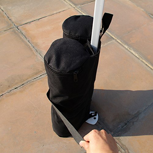 The UsCanopy Weight Bags (4 pack) is the perfect purchase for outdoor and indoor use, for versatile purposes more than just canopies, but also tents, construction and more. Each bag can hold up to 40 lbs of preferred contents including sand, rocks, dirt etc. The two cylinder bags are stitched for durability and come with a Velcro strap to latch onto things