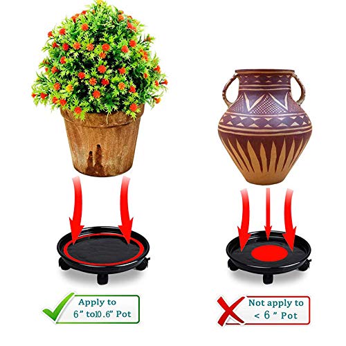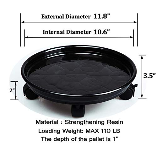 SIZE and DURABLE MATERIAL: The resin plant rolling caddy is available in sizes (10.6 inch diameters) and come in black color. This round planter stand is big enough to hold large and heavy planters or flower pot and moving around your home freely. This Plant container stand or heavy-duty patio plant caddy with wheels is indispensable, durable and attractive.