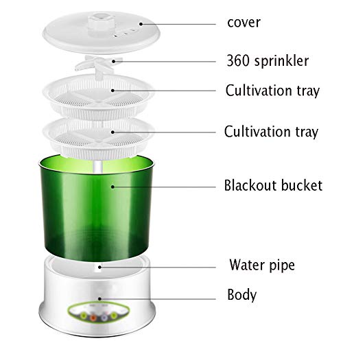UNIQUE DESIGN:360 degree sprinkler, to prevent uneven germination of beans.4 different seasons modes(Spring Autumn Summer Winter), you can make your own bean sprouts all over the year.3 layers design, save electricity, 1 machine = 3 normal single layer machines.Food grade PP material, green healthy.