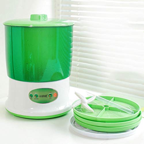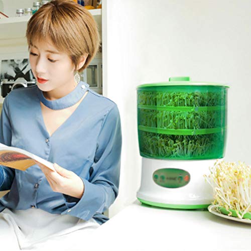 UNIQUE DESIGN:360 degree sprinkler, to prevent uneven germination of beans.4 different seasons modes(Spring Autumn Summer Winter), you can make your own bean sprouts all over the year.3 layers design, save electricity, 1 machine = 3 normal single layer machines.Food grade PP material, green healthy.