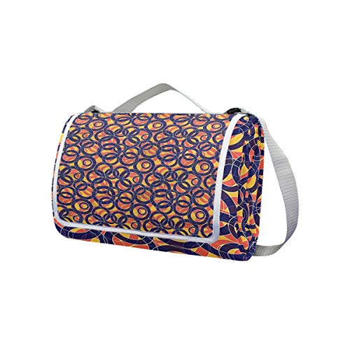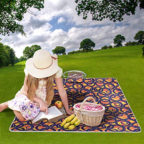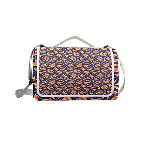 XINGAKA Picnic Blanket,Overlapping Circles,Large Beach Blanket Outdoor Camping,Waterproof Backing,Foldable