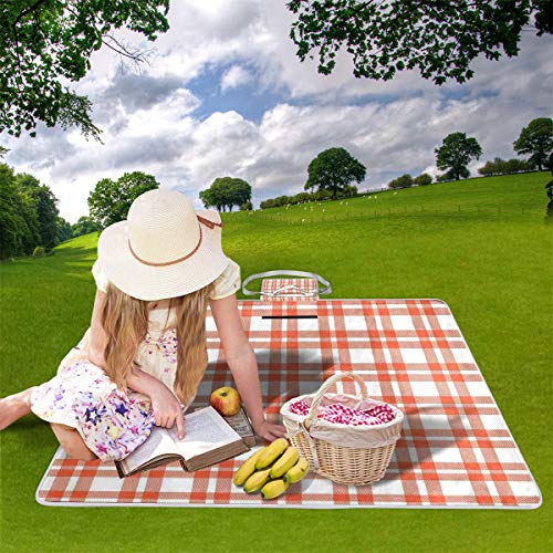 XINGAKA Picnic Blanket,Plaid Retro-Modern Checkered Print,Large Beach Blanket Outdoor Camping,Waterproof Backing,Foldable