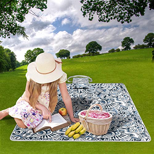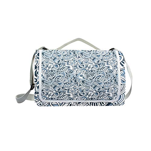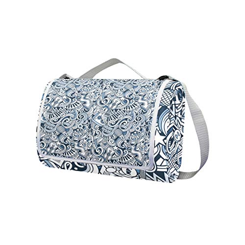 XINGAKA Picnic Blanket,Popstar Party Music Doodle Print,Large Beach Blanket Outdoor Camping,Waterproof Backing,Foldable
