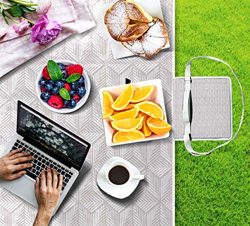 XINGAKA Picnic Blanket,Simplistic Modern Lattice Design With Stripes And Lines Retro Grid Tile,Large Beach Blanket Outdoor Camping,Waterproof Backing,Foldable