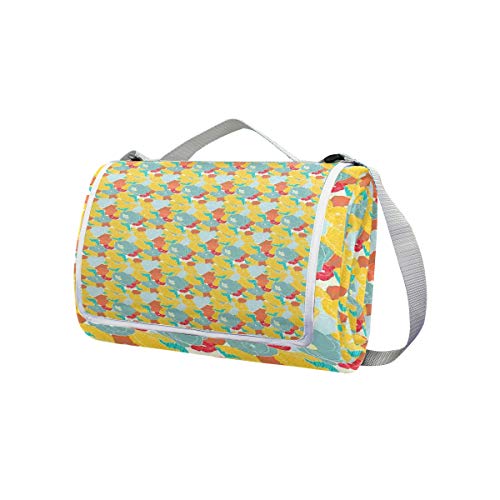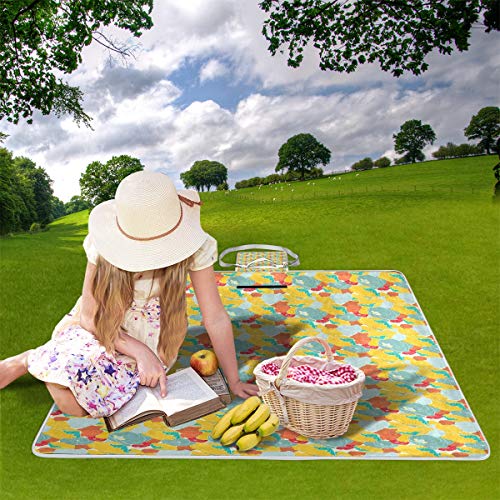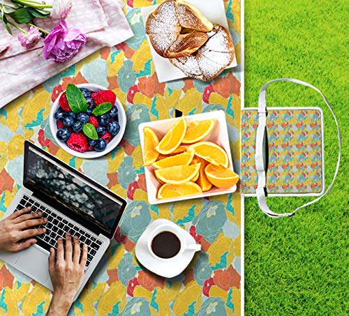 XINGAKA Picnic Blanket,Spring Nature Inspired Artwork With Poppies And Striped Petals Vintage Revival,Large Beach Blanket Outdoor Camping,Waterproof Backing,Foldable