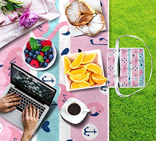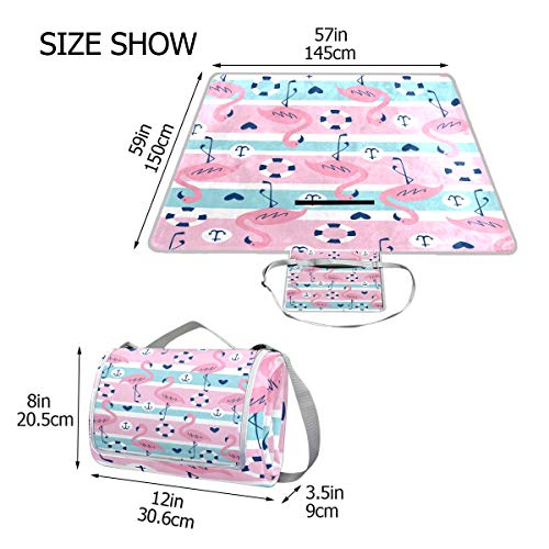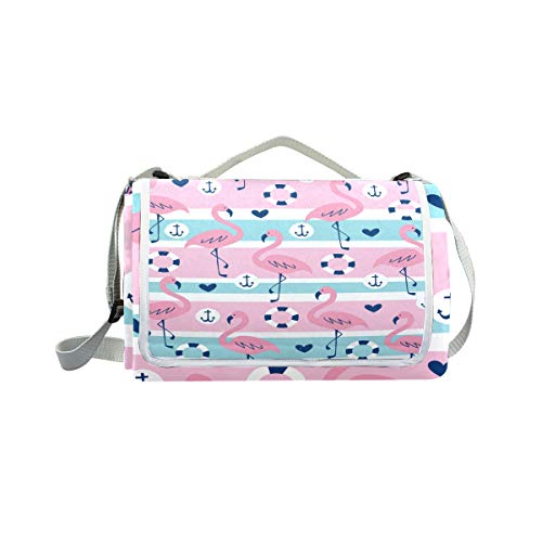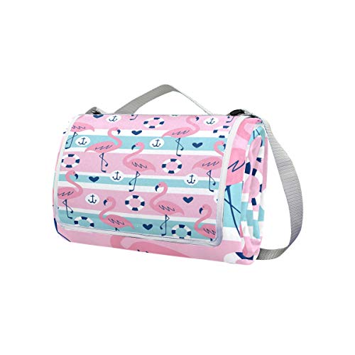 XINGAKA Picnic Blanket,Striped Flamingo Pattern,Large Beach Blanket Outdoor Camping,Waterproof Backing,Foldable