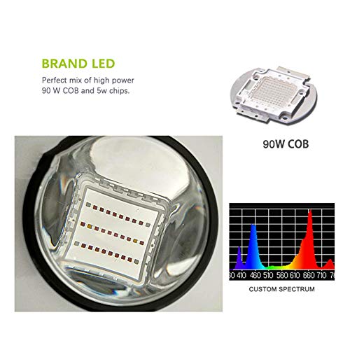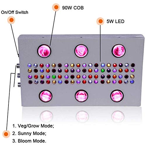 ✔ COB+LED Diodes: Grow light based on 6pcs 90W integrated COB and 72pcs 5W high power LED as light source. High Power means High Yields