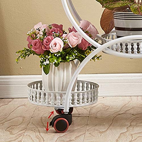 YAzNdom Flower Stand Iron Multi-layer Potted Plants Movable Wheel Metal Floor Pot Garden Terrace Standing Plant Flower Pot Display Stand Succulent Flower Stand (Color : D, Size : One size)