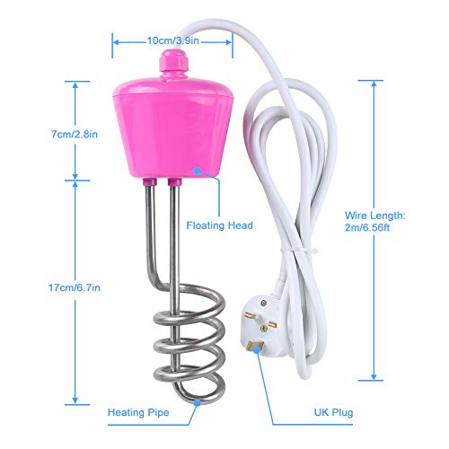 SPIRAL DESIGN FOR EFFICIENT HEATING : Spiral immersive design provides a uniform heat and fast thermal conductivity, improving the heating efficiency; With 2 square solid copper lead wire,which is long enough for easy use. this 2000W floating immersion heater is easy to get heated with good protection