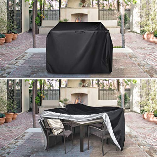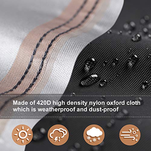 Durable Material: The garden furniture covers are made of 420D high density nylon Oxford cloth which is weatherproof and dust-proof. The inner layer has a silver coating that effectively protects against UV rays, reflect the heat away and protects the furniture from damage