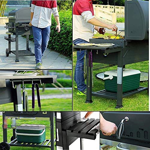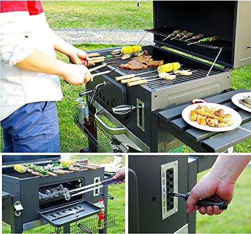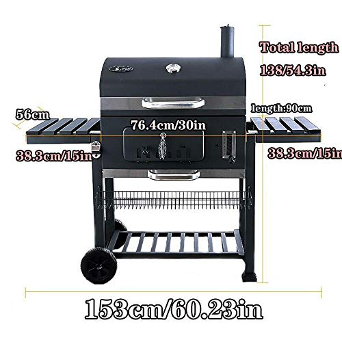 ★ 4. The size of the barbecue is 153x56x138 cm, and the barbecue cooking area is 72x46.5 cm. The BBQ comes with two 38.5x56cm side shelves for storage / space. Hooks on the side rack for tableware