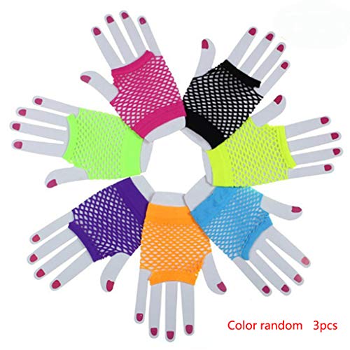 Yujum 3 Pairs Punk Goth Women Disco Dance Costume Lace Mesh Fishnet Gloves Fashion Summer Candy Colors Gloves
