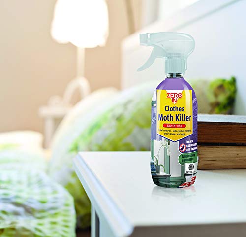 Contact killer of clothing moths: Apply spray to household surfaces such as wardrobes, cupboards and drawers, to kill clothing moths, larvae and eggs