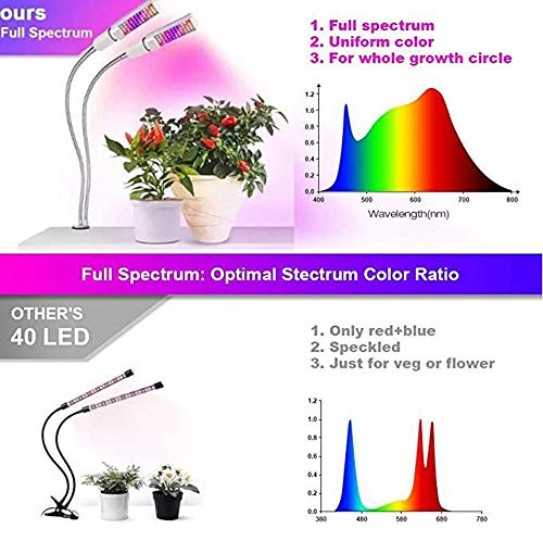 Full Spectrum LED Grow Light with Dual Head: With 88 high quality, high par value and high efficiency LED chips.Similar to the natural sunlight, ideal for all kinds of indoor desk plants at all growth stages.